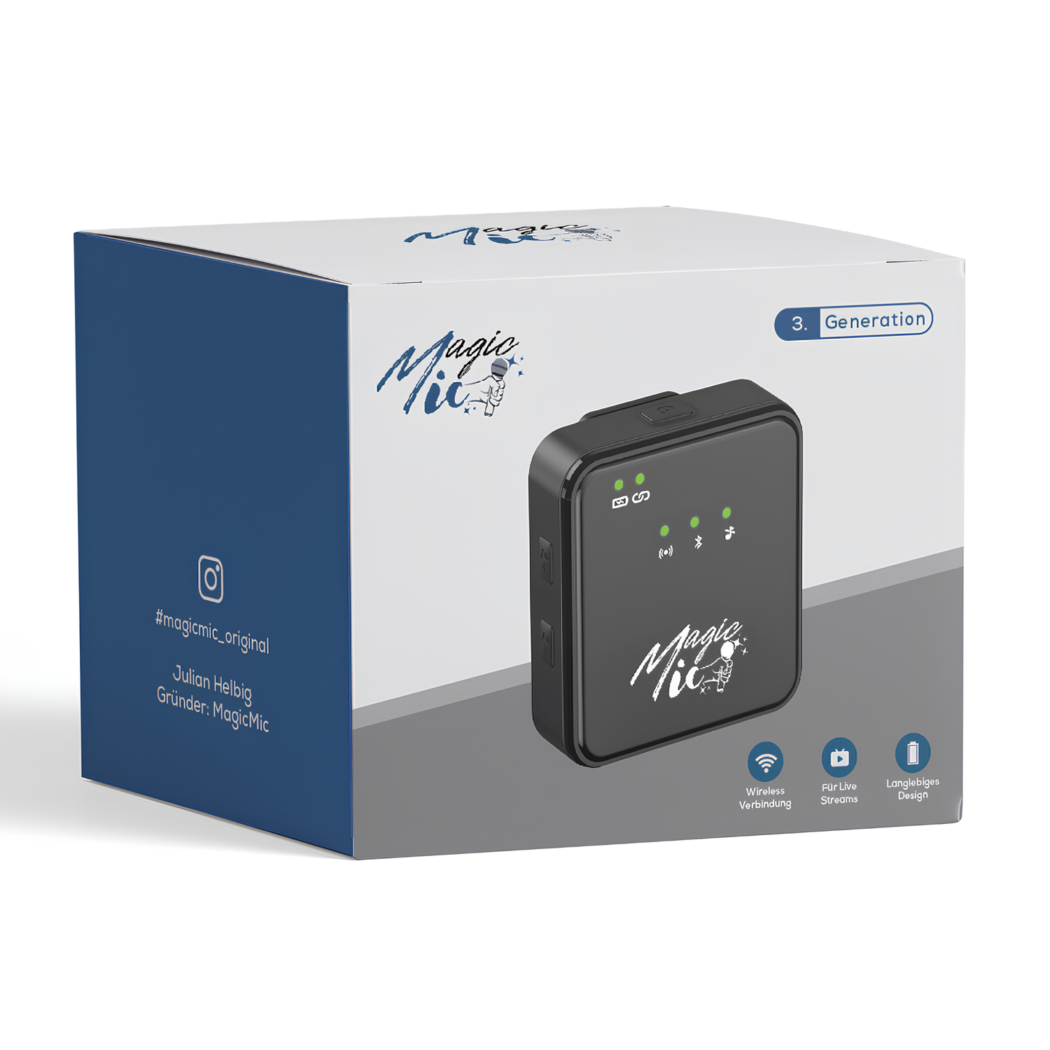 Der MagicMic Empfänger ist einzeln erhältlich und ideal für alle, die ein bestehendes Setup erweitern möchten. Mit bis zu 250 Metern Reichweite sorgt er für kristallklare Audioübertragung und ist nahtlos kompatibel mit MagicMic Sendern. Flexibel, kostensparend und leicht in der Handhabung, eignet er sich perfekt für vielseitige Anwendungen und ist Plug & Play fähig.