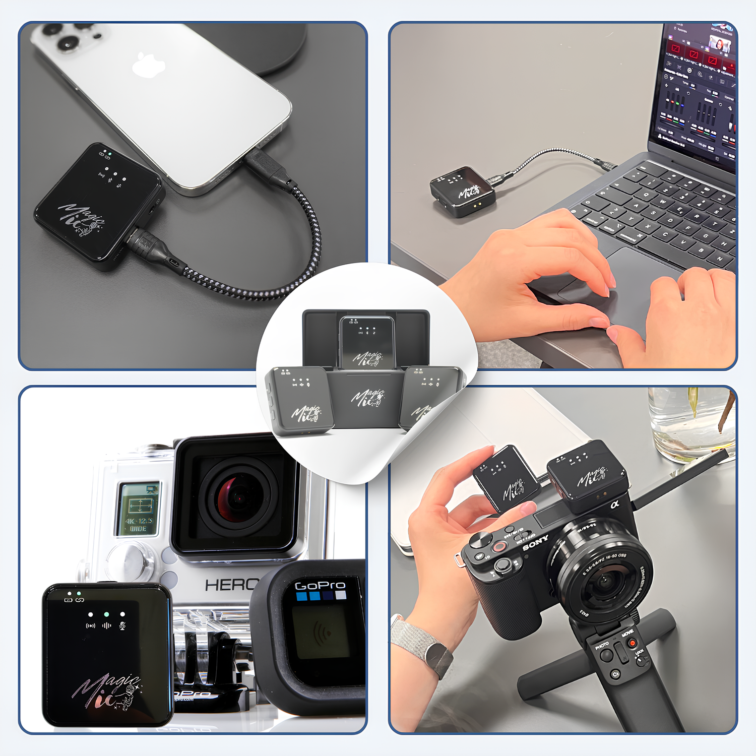 Das MagicMic™ Interview Set kombiniert das MagicMic™ 3. Generation Mikrofon mit einem Handadapter, der für maximale Flexibilität sorgt. Dadurch können Interviews und Moderationen sowohl freihändig als auch mit einer stabilen Mikrofonposition durchgeführt werden. Das Set ist speziell für Creator entwickelt, die auf beste Audioqualität setzen, sei es für Interviews, Moderationen oder Events. Es bietet eine praktische Komplettlösung, die direkt einsatzbereit ist und keine zusätzliche Software benötigt.