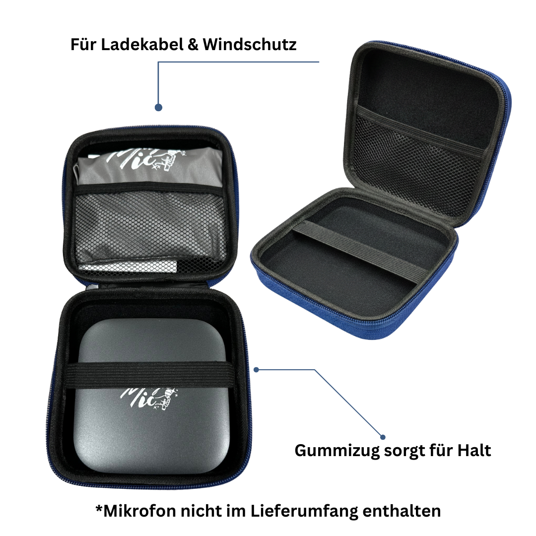 Mit der MagicMic 3 Pro Tasche hast du dein Mikrofon immer sicher und geschützt dabei. Die kompakte und wasserabweisende Tasche bietet ausreichend Platz für dein MagicMic Mikrofon 3 Pro und sämtliches Zubehör. Dank des zusätzlichen Fachs für Kabel und Adapter behältst du stets den Überblick und vermeidest Kabelsalat.